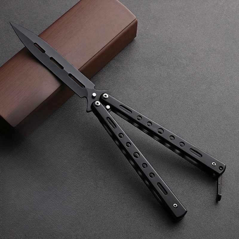 Total length: 252mm (9.92 inches) Blade length: 115mm (4.52 inches) Handle length: 137mm (5.39 inches) Blade thickness: 3mm (0.118 inches) Blade width: 21mm (0.82 inches) Handle thickness: 13mm (0.51 inches) Hardness: 56-58HRC Blade material: 440 Handle material: Aviation aluminum 6061-T6 Net weight: 105gREP integrated aluminum handle uncut practice butterfly training