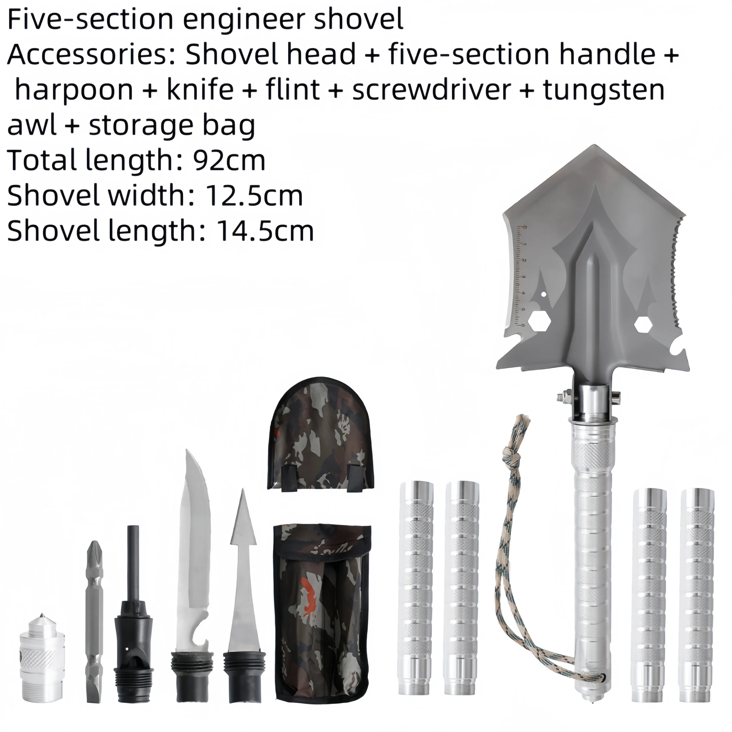 Shovel outdoor shovel multifunctional manganese steel wild fishing shovel self-defense vehicle folding shovel